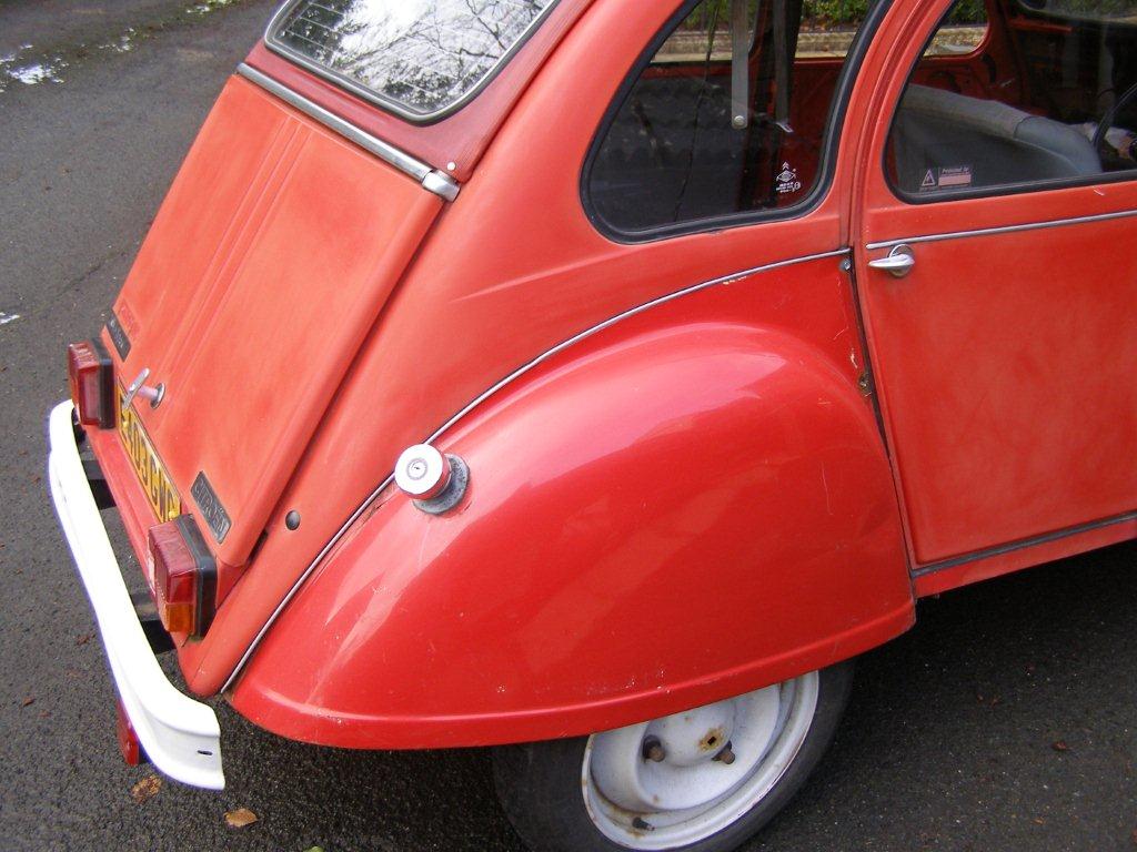 Well I was watching TV on a wet Sunday in 2012, and there was a program about Raymond Blanc, in which he was driving around in the lush sunny French countryside in a Citroen 2CV – by contrast our summer had been wet and dull. I came into work on the following Monday and told my colleague Adam here at Holdens about it and said that I’d owned two 2CVs previously. A yellow one, when I was about 23 in which I would travel to Leeds and Manchester from Cheltenham (where I was living) almost weekly with my job. I was working for Kays of Worcester the mail order company, and after being there about 2 months I was transferred to work for Great Universal Stores in Manchester, so the little car soon racked up the miles.A few years later after the birth of my first daughter I got a blue one (as a second car), to be followed by a blue 600cc Visa.Well Adam decided to interrogate Ebay and found this red one in north London, it was being sold as:- one family from new, 52000 miles, no mot, and had been off the road for the previous 4 years, but running!Suffice to say I won the bidding, and drove down to pick it up using our works van and car transport trailer.It was just as described and didn’t need much to get through the MOT. It has been regularly used ever since, by me and, whenever he’s home, by my son Tristan.Tris’s girlfriend got him tickets for the 24 hour race in Anglesey for this August as his Christmas present, see http://www.2cvracing.org.uk/ . So I’ve decided that it is time to sort out the poorly welded floor, and whilst we’ve got the body off, sort out a new chassis for the car, and of course some nice new paint!Around Christmas I took the car over to local 2CV guru Pete Sparrow of Sparrow Automotive in Hereford, see http://www.sparrowautomotive.co.uk/citroen2cv-sparr.html, and he has agreed to undertake the floor welding. The new chassis has been purchased from Ken Hanna of SLC Chassis. The chassis should be with me early February, and this weekend the strip down has begun.The front wings come off by undoing 4x19mm nuts after first removing the fillet panel above them( 3x8mm bolts) the bonnet just slides off to the right or left after disconnecting the washer pipe from the washer jet, so easy start!I also managed to remove all the door lock mechanisms, seat belts,rear doors and roof and boot lid assembly (all a bit more fiddly to do).