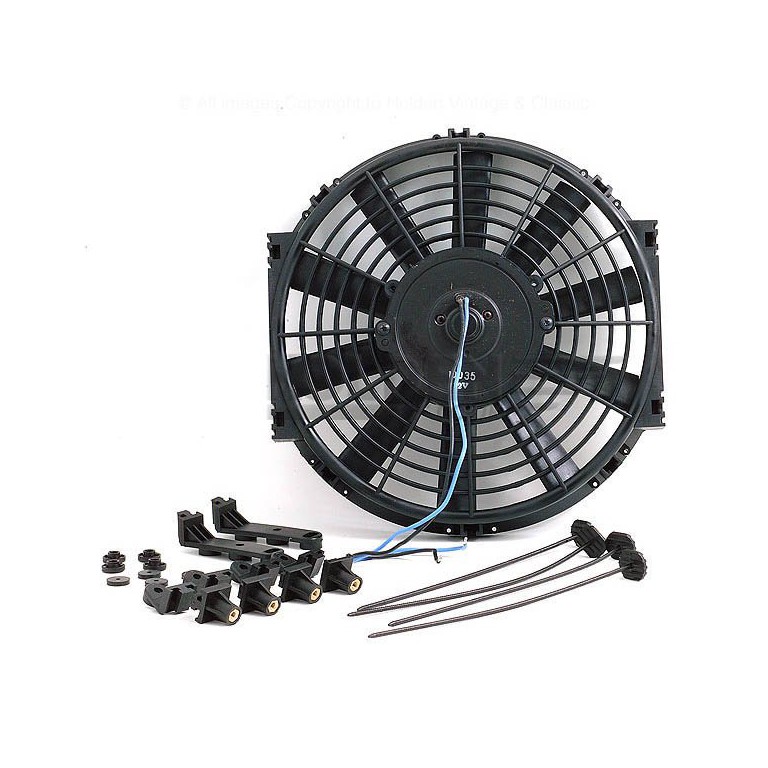 This size of Electric Fan would normally be applied to the water radiator of an engine over 2000cc. This model fits to the front of the radiator and blows air through it. It comes with a variety of adaptors to assist you in fitting it to your radiator.