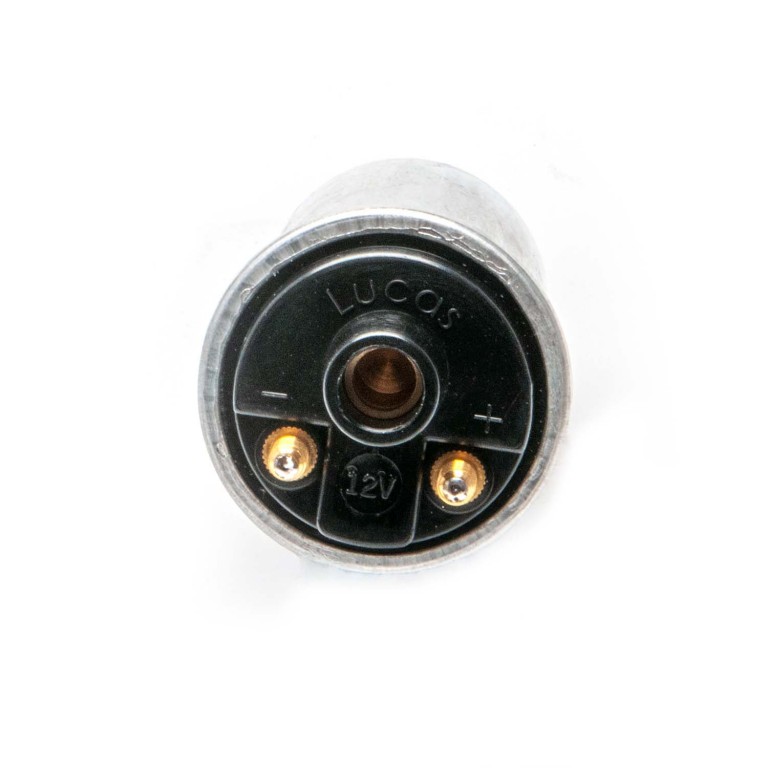 Lucas 47276 coil. 12 volt. Overall height 110mm, body height 85mm, diameter 39mm, primary coil resistance 4.8 ohms and secondary coil resistance 8.9 k/ohms