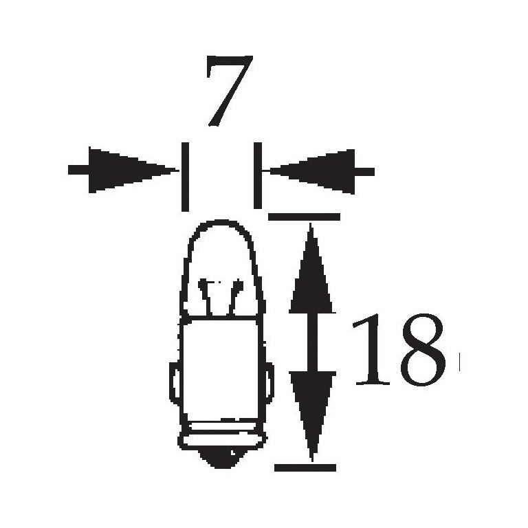 Single Contact Bayonet Bulb 12 volts and 2 watts. Ba7s cap. LLB281