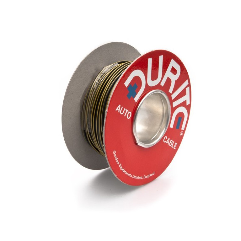 This is the correct wire to use for electrical loads up to 8 amps in vehicle applications. Nominal cross sectional area 1 square mm. PVC insulation. Black/Yellow is used for the connection between the speedo sender and the electronic speedometer.
