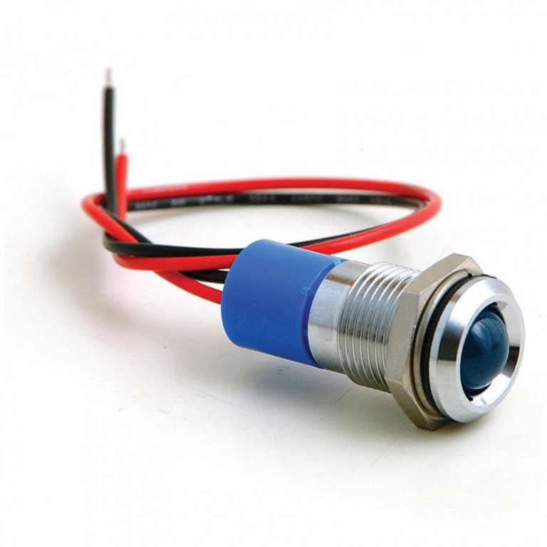 16 mm diameter, requires hole size 14 mm diameter. LED''s use less current than a bulb and last much longer. Totally sealed and suitable for use in an open car. Other colours available are Green, Red and Amber. If you find this lamp to be too bright you can reduce the brightness by fitting a Resistor in the positive supply line. NOTE : These LED warning lamps will only work on negative earth electrical systems It has been found in using one of these warning lamps that it is far too bright, and we therefore recommend the resistor is used.