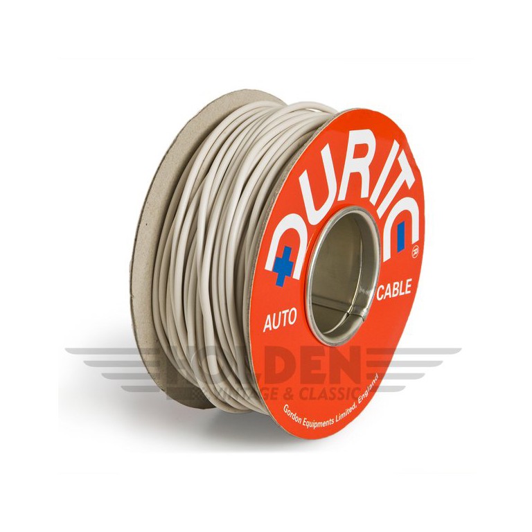 This is the correct wire to use for electrical loads up to 17 amps in vehicle applications. Nominal cross sectional area 2 square mm. PVC insulation. White is used from the ignition switch to the petrol pump.
