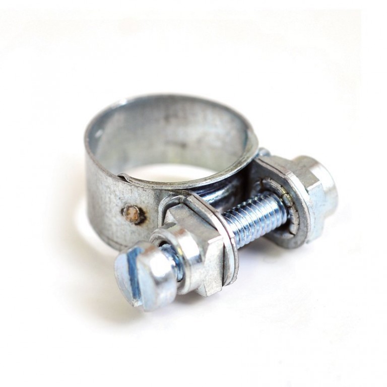 Special fully rounded hose clip to ensure a leak proof seal on fuel pipes. To fit remove screw and fit clip over hose, replace screw, squeeze to fit end of screw into nut and tighten