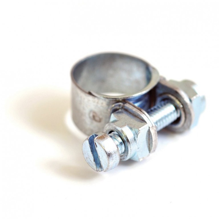 Special fully rounded hose clip to ensure a leak proof seal on fuel pipes. To fit remove screw and fit clip over hose, replace screw, squeeze to fit end of screw into nut and tighten