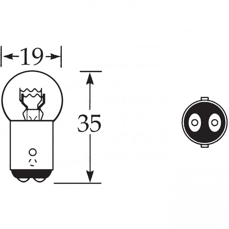 Double Contact Bayonet Bulb with offset locating pins for rearlamps. Ba15d cap. This Bulb has a small glass envelope as required for motorcycles LLB384/S