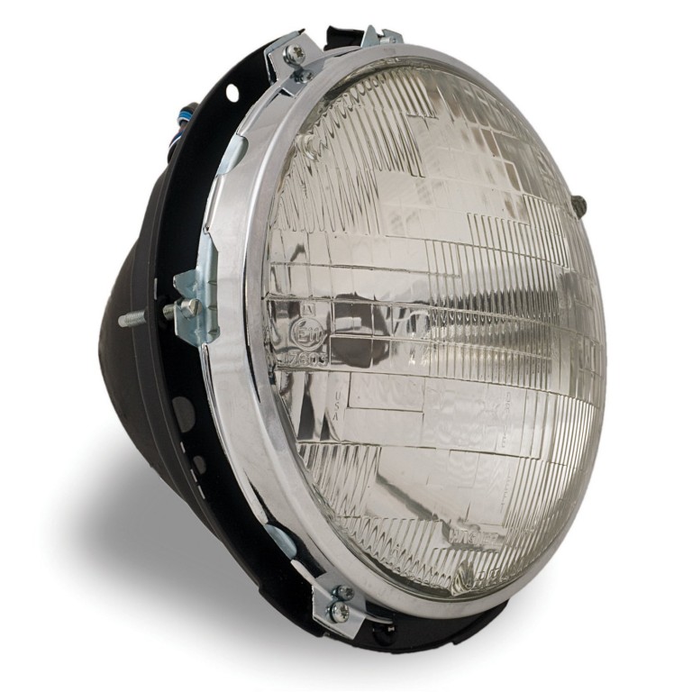 Complete with the special truncated steel backshell required to fit the Jaguar E Type Series I. E marked Halogen light unit with main and dip 60/55 watts, and with wiring harness. Dips to the left hand side of the road. The backshell is available separately refer to 54520553