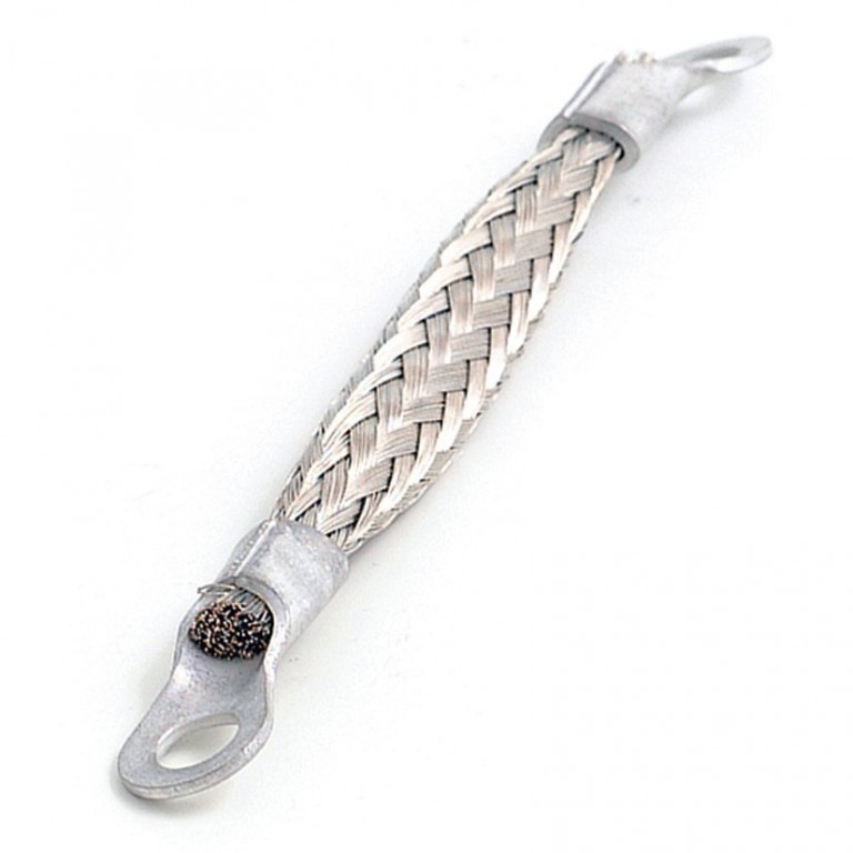 Braided earth cable both ends have an 8mm diameter eyelet. The cable has a 10mm round cross section 24x9 strands of 0.3mm tinned copper. Length is 225mm. For other cables refer to 080.378 to 080.382. For earthing components to body or chassis.