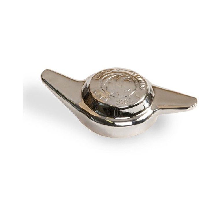 Quality Wheel Spinner (or Hub Nut) for AC Left Hand Side. The thread on the hub is 42mm diameter, 8 threads per inch. With AC logo and as used on the AC Ace