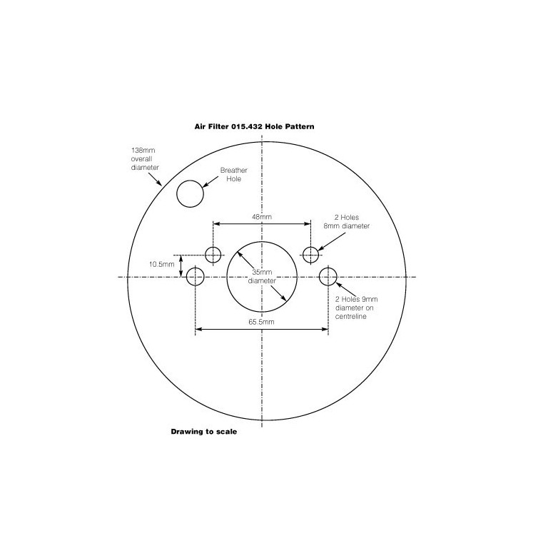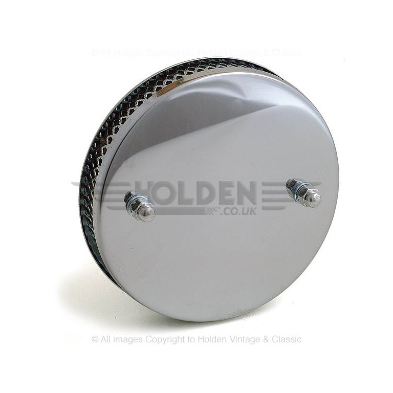 Chrome Air Filter for 1 1/2 SU carburettor H4, HD4 and HS4 as used on Austin Healey BJ7 Mk II, Mini 1275GT, MGB, MGB GT. This Air Filter is pierced for a breather tube from the Filter to the engine. A Breather Adaptor Kit contains both the adaptor and a blanking grommet for use when the breather pipe is not required, for this refer to 015.439. The hole in the centre is 35 mm (1 3/8) diameter. One inch deep, with one and a half inch clamping bolts.