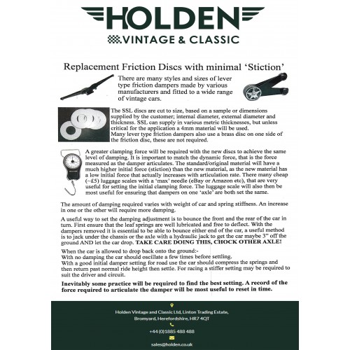 Minimal friction Andre Hartford replacement friction discs. These are designed to improve your vehicle's ride quality by reducing friction within the shock absorber.