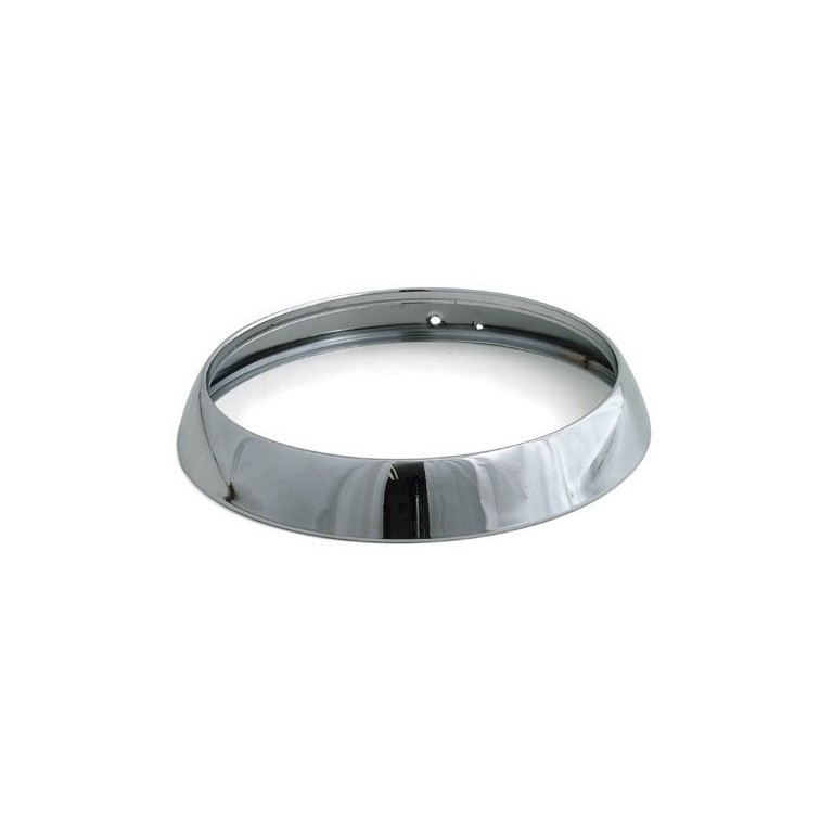 Headlamp rim as fitted to Austin Healey 3000 BJ8. Chrome plated. Reproduction of Lucas 54522515 Screw Fitting. Measures 215 mm external diameter