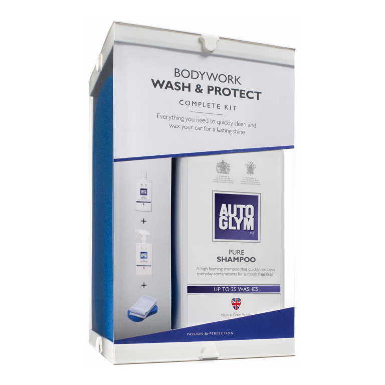 Contains 500ml Bodywork Shampoo, 500ml Rapid Aqua Wax, Sponge, and 2 Polishing Cloths. Bodywork Shampoo removes everyday contaminants from your vehicle and Rapid Aqua Wax, the best-kept secret in car care, protects that beautiful clean shine. The carnauba-based Rapid Aqua Wax can be applied directly to a wet vehicle straight after washing, giving you a stunning hard wax finish. For all cars - vintage, classic and modern.