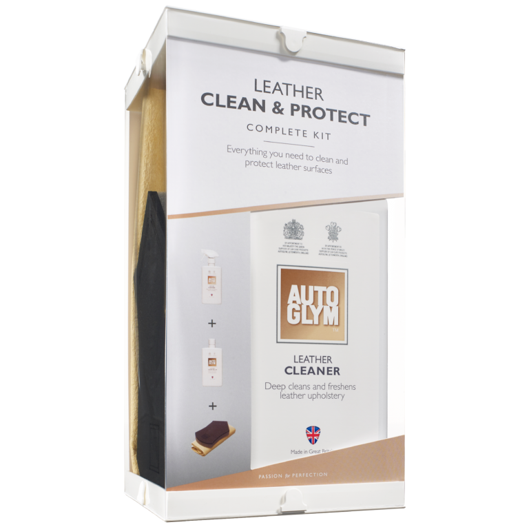 Contains 500ml Leather Cleaner, 500ml Leather Care Balm, Polish Applicator and Polishing Cloth. The leather in your vintage, classic or modern car is a hard wearing, yet comfortable material. To ensure it remains healthy and supple it must be cared for regularly. This kit has been developed with leading automotive brands to clean and protect without discolouring or affecting the natural matt finish. Leather care is simple, step 1 is to clean, step 2 is to protect
