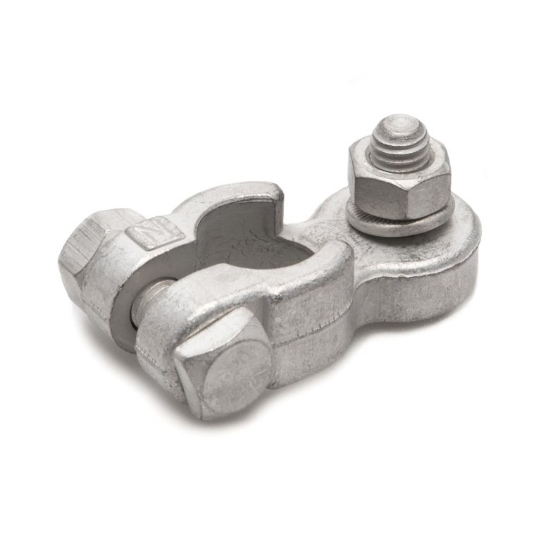 Negative battery terminal with 8mm stud. This battery terminal is designed to allow fitting of multiple cables with a ring terminal fitted to the end. Ideal for use where you have more than one battery connected together, such as you may find in a caravan or boat installation, or where a separate heavy feed is required, for example an off road vehicle with a winch fitted.