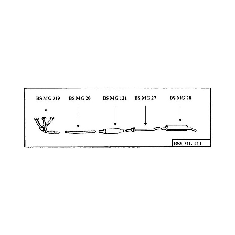 BELL MGB RUBBER MANIFOLD BOMB STAINLESS STEEL EXHAUST SYSTEM. Made in England by BELL Steel UK, a leader in classic car stainless steel exhaust systems, it is engineered for an exact fit for the vehicle. Stainless Steel throughout, the silencer is 304 stainless and the pipes are 409 Stainless. Lifetime warranty by Bell against defects.