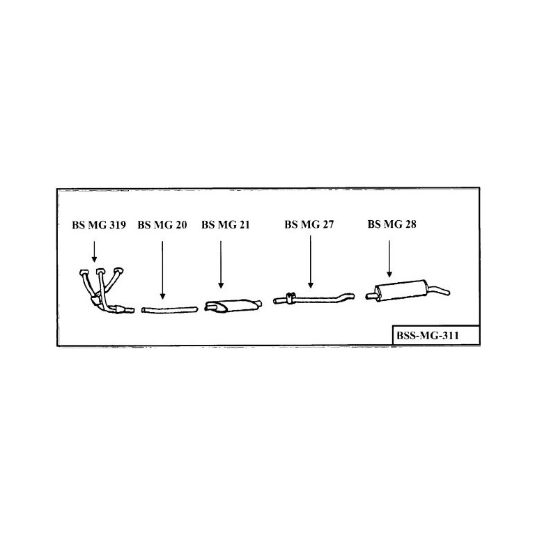 BELL MGB RUBBER STANDARD MANIFOLD STAINLESS STEEL EXHAUST SYSTEM. Made in England by BELL Steel UK, a leader in classic car stainless steel exhaust systems, it is engineered for an exact fit for the vehicle. Stainless Steel throughout, the silencer is 304 stainless and the pipes are 409 Stainless. Lifetime warranty by Bell against defects.