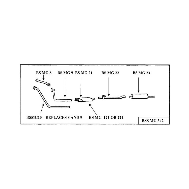 BELL MGB U.S. SPEC. CAT. BACK STAINLESS STEEL EXHAUST SYSTEM - CHROME BUMPER. Made in England by BELL Steel UK, a leader in classic car stainless steel exhaust systems, it is engineered for an exact fit for the vehicle. Stainless Steel throughout, the silencer is 304 stainless and the pipes are 409 Stainless. Lifetime warranty by Bell against defects.