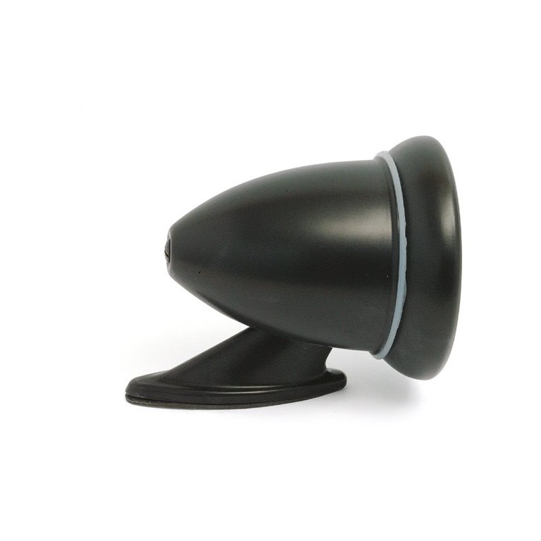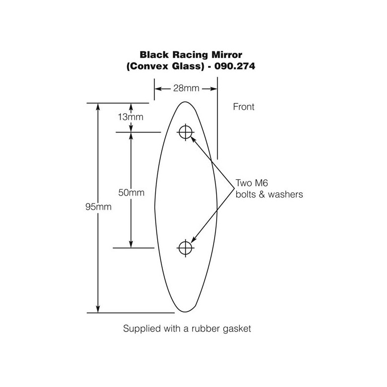Black wing mounted racing type with two bolt fixing. Convex glass 100mm diameter.