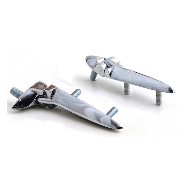 As fitted to many cars, including Triumph TR4, Spitfire Mk I, II, III, Herald, Nash Metropolitan, Standard 8 & 10. Sold as a pair. The total overall length is 12 ½ cm, total height is 3 cm.