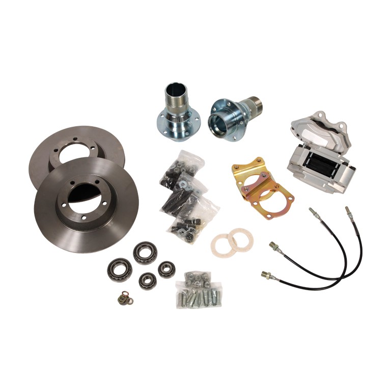 Brake caliper upgrade conversion - Kit of parts to convert drum brakes to discs - includes discs, pads, hubs and calipers. Wire wheel cars only
