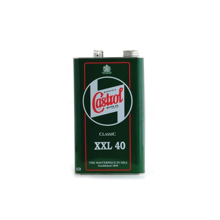 Castrol Classic XXL40 - A low detergent, high-quality monograde SAE40 engine oil which is also suitable for use in gearboxes that were fitted to vintage and classic cars. XXL40 contains selected additives to control high temperature ''varnish'', gives a good anti-wear performance, and helps prevent the build-up of low temperature ''sludge''. It is useful for cold temperature starting and gives improved oil pressure at high operating temperatures. XXL40 is formulated for Summer use in car and motorcycle engines and winter use in engines that would otherwise have high oil consumption. Suitable for pre-1970 motorcycles 1 gallon (4.54 liters) is supplied in a classic metal can.