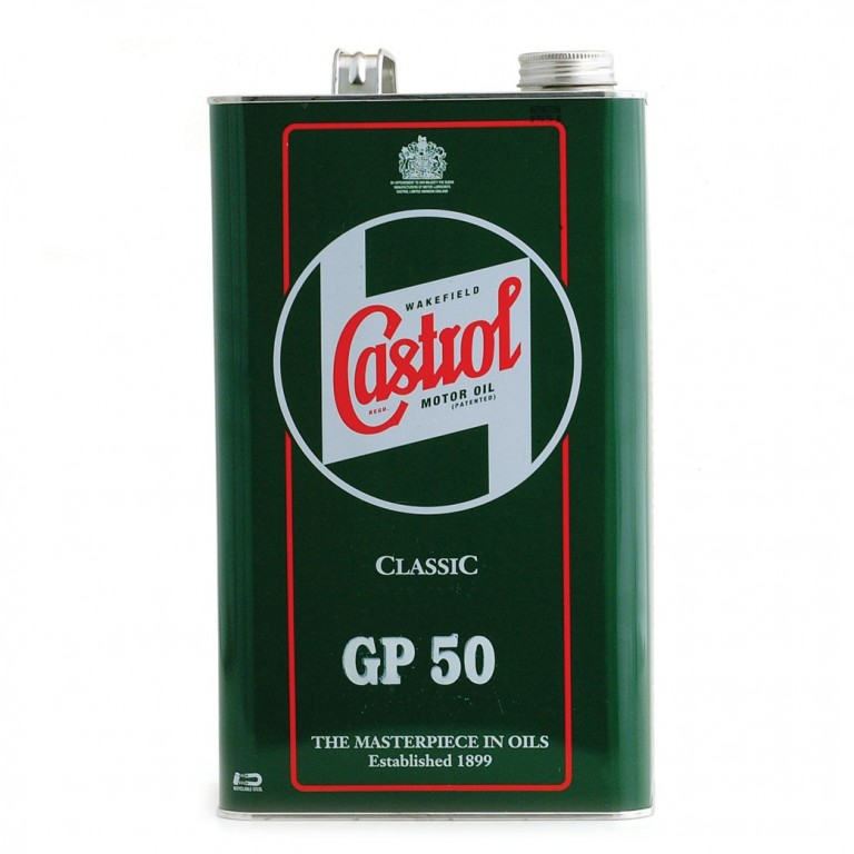 Castrol Classic GP50. A low detergent, high quality monograde SAE50 mineral based oil of high viscosity with certain anti-oxidant and load carrying treatment. GP50 is suitable for applications requiring an oil of high viscosity and relatively low performance levels such as older (vintage) engines and some motorcycles. 1 gallon (4.54 litres) supplied in a classic metal can.