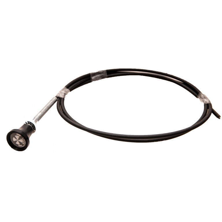 1.5 metres long. Locks when you turn the round handle. Thread is 3/8 UNF and needs a 3/8 in diameter hole