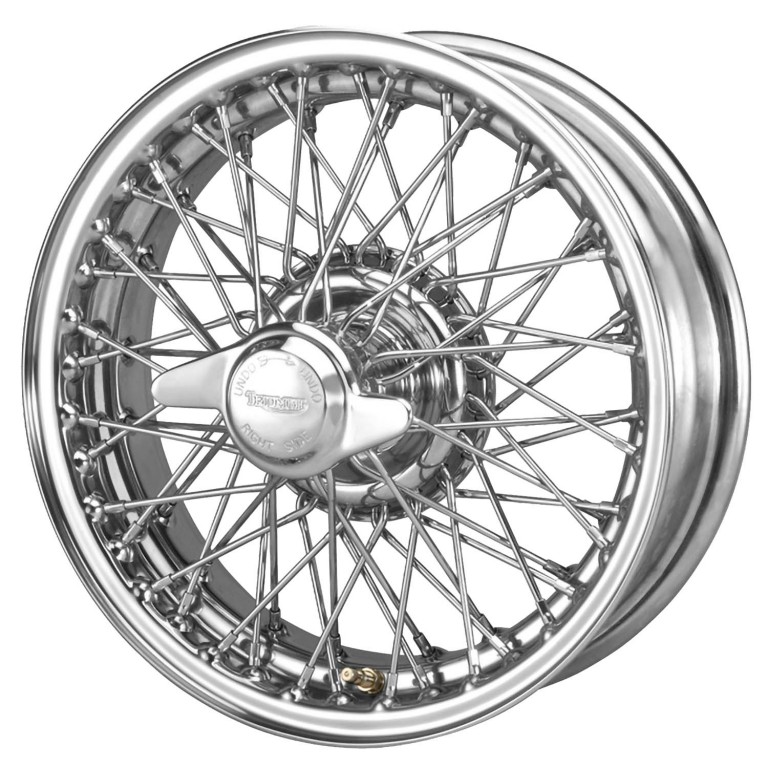 MWS chrome wire wheels for Austin Healey, Daimler and Morgan, are manufactured using the latest multi layer nickel chrome plating techniques. The rims and shells are polished to a superior finish, which is complimented with final hand polishing by highly skilled craftsmen leaving a brilliant lustre. The stainless steel spokes and nipples are electro-polished and chrome-plated to match the colour and lustre of the rims and shells.