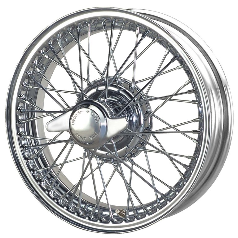 MWS chrome wire wheels for Austin Healey, Lotus Elite, MGA, MG TD/TF, Reliant Sabre 4/6 are manufactured using the latest multi layer nickel chrome plating techniques. The rims and shells are polished to a superior finish, which is complimented with final hand polishing by highly skilled craftsmen leaving a brilliant lustre. The stainless steel spokes and nipples are electro-polished and chrome-plated to match the colour and lustre of the rims and shells.