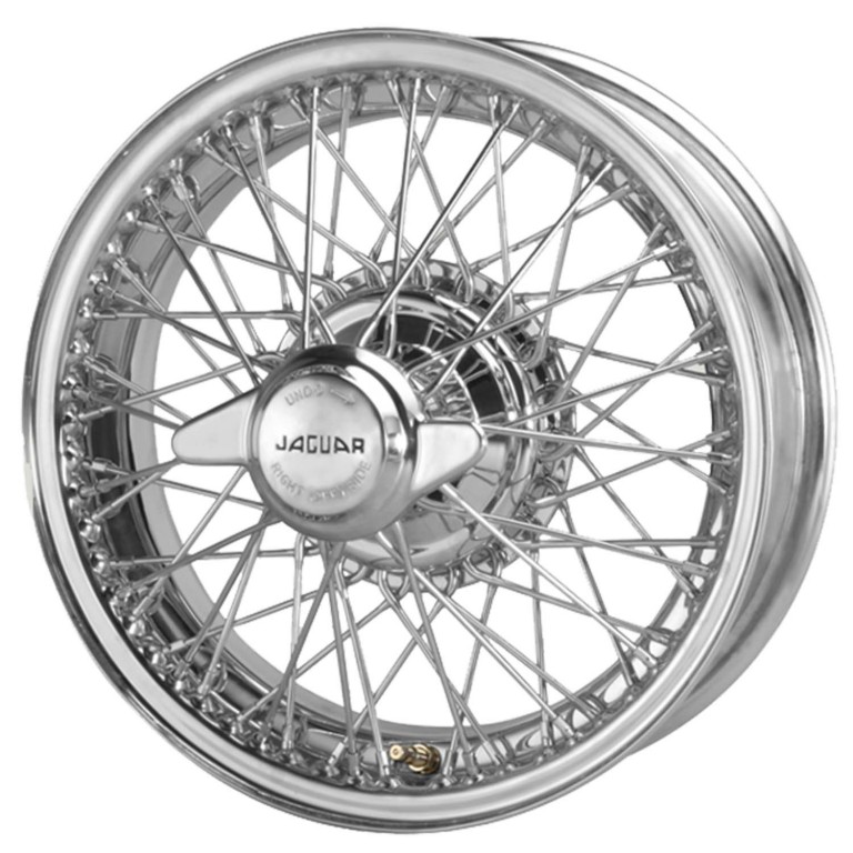 MWS chrome wire wheels for Jaguar XK120/140/150 are manufactured using the latest multi layer nickel chrome plating techniques. The rims and shells are polished to a superior finish, which is complimented with final hand polishing by highly skilled craftsmen leaving a brilliant lustre. The stainless steel spokes and nipples are electro-polished and chrome-plated to match the colour and lustre of the rims and shells.