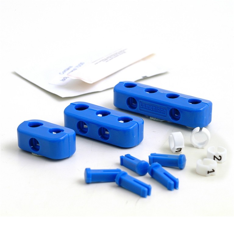 Comprises three Clamps in blue plastic, each of which clips together using the pegs supplied. One for two leads, one for three and one for four leads. Also included are Cable Markers for identification of ignition leads, numbered 1 to 4. Also a sachet of Silicon Compound for application to coil and distributor covers to make a moisture seal on these connections. For equivalent in red refer to 030.082