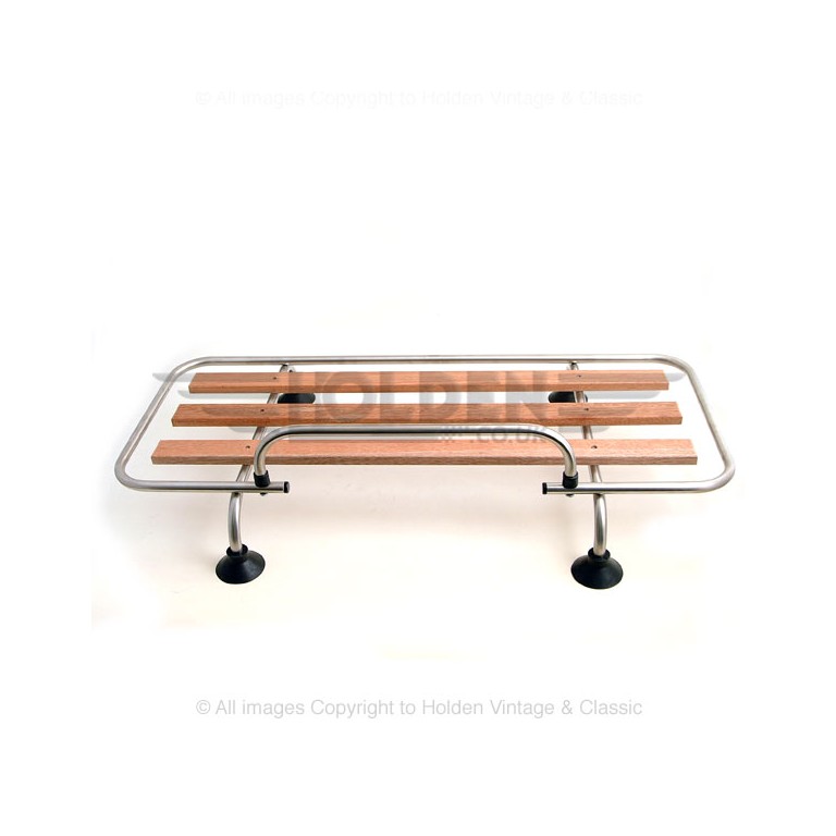 Made from aluminium. It sits on four rubber feet on the boot lid and is retained on the edge of the lid by adjustable clamps. Alternatively, the four feet are tapped M6 and it would be possible to bolt through your boot lid into the feet to secure the rack permanently. The platform size is 880 mm wide and 375 mm deep. Will fit across boot lids from 690 to 1360 mm wide and at least 515 mm from front to back MADE TO ORDER 3-6 WEEKS