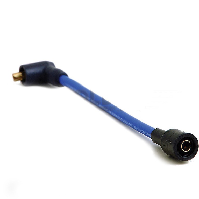 This Ignition Lead has an uprated high-tech stainless steel wire-wound conductor of 2mm diameter which will properly suppress both RFI and EMI on all vehicles without reducing spark current or deteriorating with use. The extremely flexible high-tear strength silicone insulating covers allow leads to be fitted into Lucas or similar coils and distributors with push-on connections and provides excellent terminal retention. External diameter 8 mm. Maximum service temperature 260 deg C. Distributor end is angled at 90 degrees to enable the lead to be fitted in tight spaces. Made for us by Magnecor