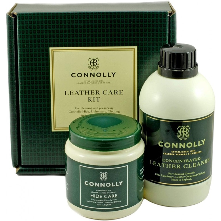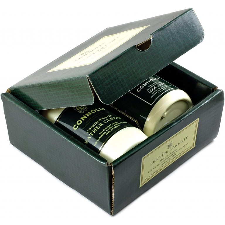 One jar of Leather Cleaner and one of hide Food. The Cleaner is diluted to remove ingrained dirt, grime, and mild grease deposits prior to using the Hide Food, which is a scientifically prepared dressing that nourishes the leather fibers and helps to keep the hide supple. Economical to use and quickly applied and does not smear.