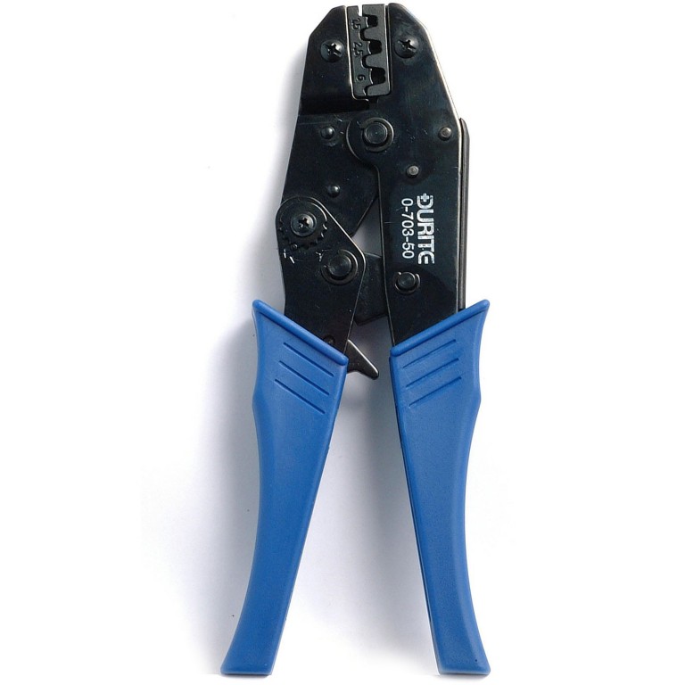 A ratchet type for uninsulated connectors where full crimping pressure must be applied before the terminal can be released. The pressure at which this occurs can be adjusted. The tool the professionals use