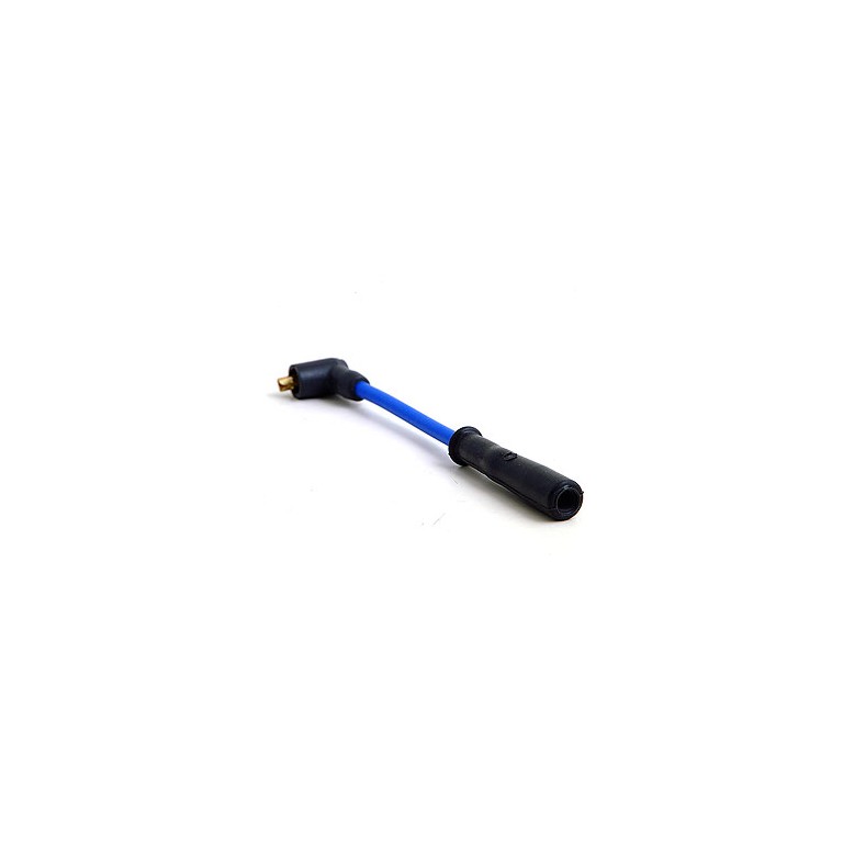 This Ignition Lead has an uprated high-tech stainless steel wire-wound conductor of 2mm diameter which will properly suppress both RFI and EMI on all vehicles without reducing spark current or deteriorating with use. The extremely flexible high-tear strength silicone insulating covers allow leads to be fitted into Lucas or similar distributors with push-on connections and provides excellent terminal retention. This end is angled at 90 degrees to enable the lead to be fitted in tight spaces. The other end clips firmly onto all normal spark plugs. External diameter 8 mm. Maximum service temperature 260 deg C. Made for us by Magnecor