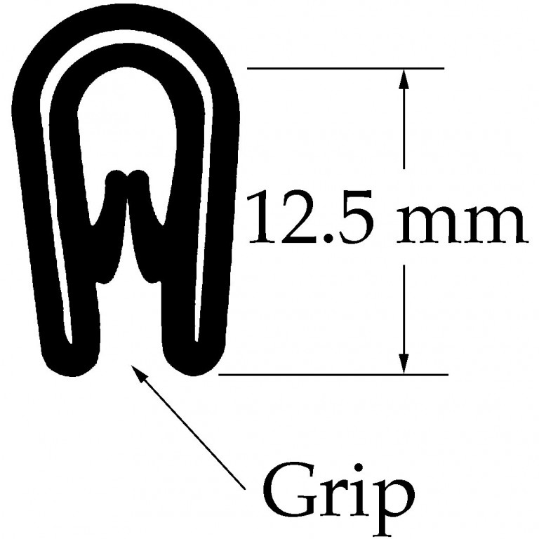 Grip range 1mm to 3mm. Goes 12.5mm over flange. Sold by the metre