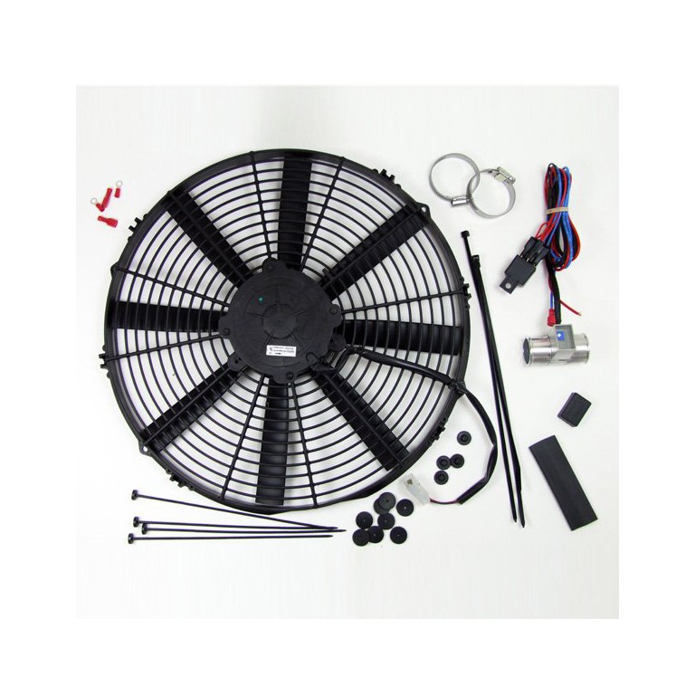 Revotec fan kit. Specifically engineered to fit and cool your Triumph Stag. Supplied complete with quality electric fan and all necessary brackets, fixings, hose clips and connectors to provide a complete installation on your Stag. Fits without any permanent modifications except for the need to cut one hose to fit the electronic temperature controller. Fits with basic hand tools. OEM components used throughout. The latest fan and controller technology are used together for the ultimate cooling package. For 12 volt negative earth only