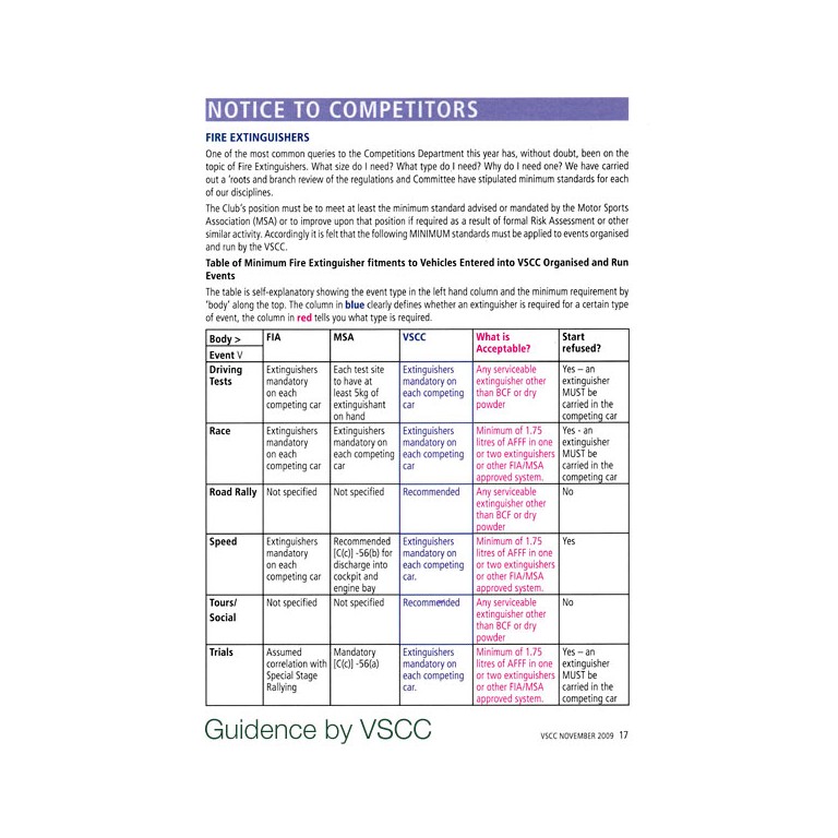 Uses Aqueous Film Forming Foam (AFFF), a low expansion foam which forms a vapour sealing film over hydrocarbon fuels. Supplied complete with bracket and quick release over centre strap. 108 mm diameter and 373 mm overall height. This capacity is often specified in RAC and Classic Rallying Regulations.