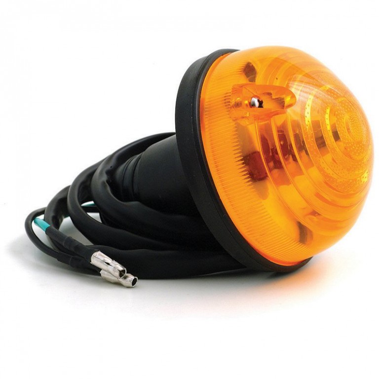 Flasher lamp for single contact bulb. Not E marked lamp with amber lens. Supplied with approximately 90cm of cable. The required bulb must be purchased separately, as these lamps are supplied without a bulb. Overall diameter 73 mm, requires hole 35 mm diameter.