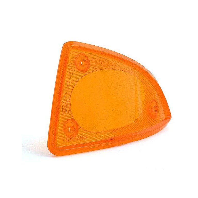 Made on the original BUTLERS Tooling this is the amber lens for nearside front sidelamp on Ford Anglia, where there were separate indicator and sidelamps fitted. Aclear version is also available