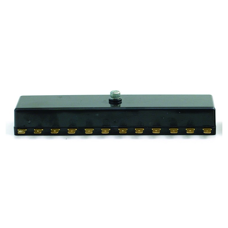 Fuse box for 12 Continental type fuses. Each end of the fuse holder has 6.4mm lucar terminals to connect your wires. Black plastic cover retained by thumb screw.