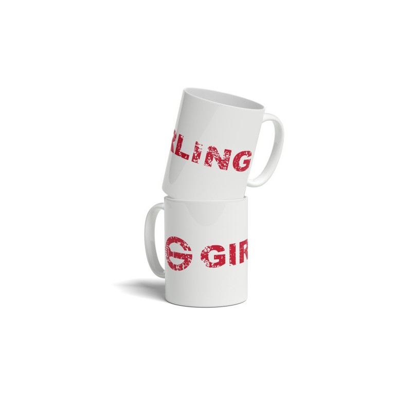 Girling Distressed Text Mug (Single Mug) 330ml ceramic mug with a full colour wrap around print Dishwasher resistant up to 800 wash cycles at 45°C. Bright white in colour and with a high gloss finish.
