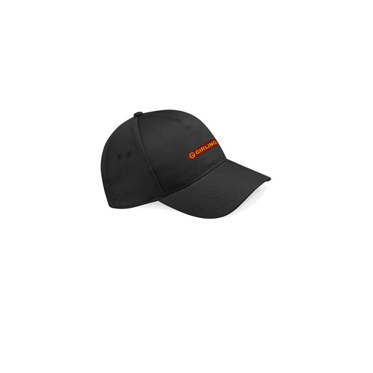 Girling 5 Panel Cap in Black Embroidered to the front with Girling logo. Rip-strip. size adjuster. 5 panels. 75g weight. 100% cotton drill material.