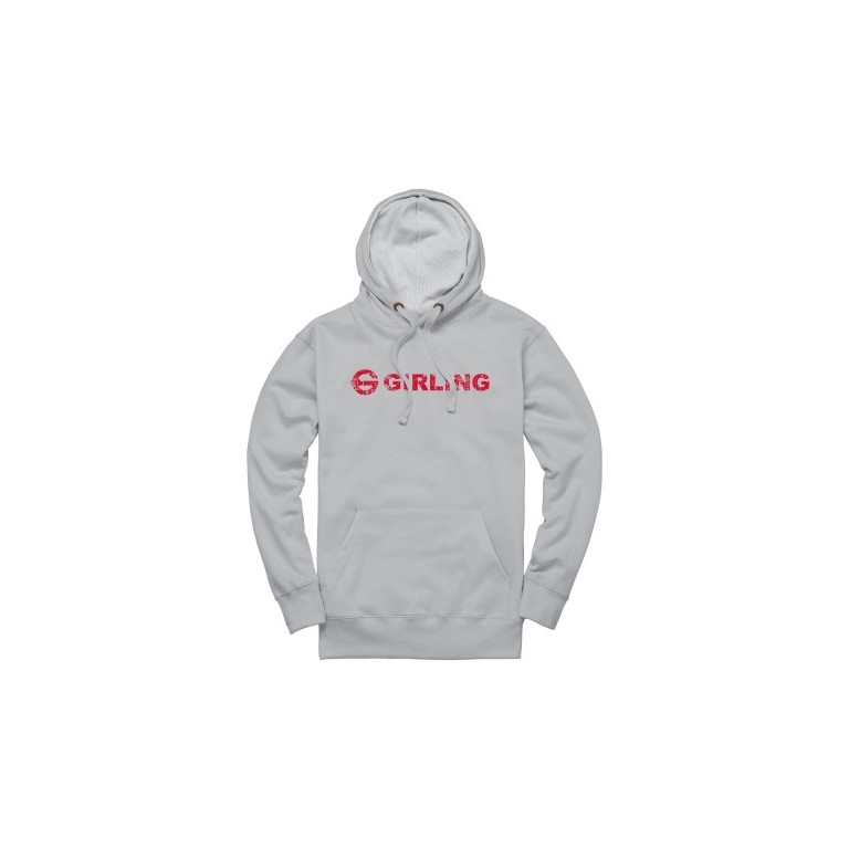 Girling distressed Pullover Hoodie Heather Grey in size 3 Xtra Large DTG printed to front. Kangaroo pocket with concealed phone pocket. Soft feel fabric with stretch for extra comfort. Self Colour waffle hood lining. Twin needle stitching detail. Fashionable long cuff made with 2by1 rib. 280gsm fabric. 35/65 Polycotton blend.