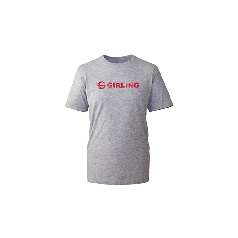 Girling Heather Grey Distressed DTG printed t-shirt in size 3 Xtra Large. Fashion fit. Ribbed collar. Taped neck. Side seams. Twin needle stitching.100% organic combed ringspun cotton. 145gsm.