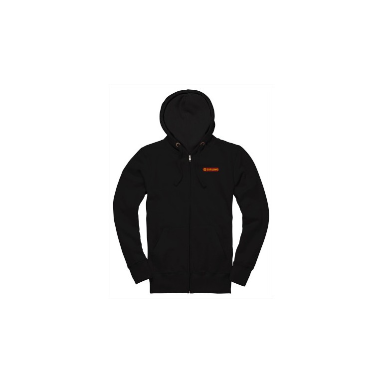 Girling Zip-Up Hoodie with Embroidered Girling logo to the left chest. Black in size 3 Xtra Large Kangaroo pocket with concealed phone pocket. Soft feel fabric with stretch for extra comfort. Self Colour waffle hood lining. Twin needle stitching detail. Fashionable long cuff made with 2by1 rib. Self colour nylon zip with zip cover.280gsm fabric. 35/65 poly cotton blend.