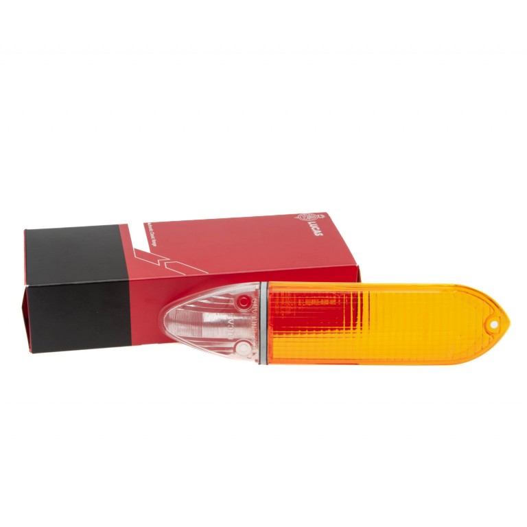 L652 Front Domed Indicator/Side Lamp Lens - Amber/Clear, European specification.