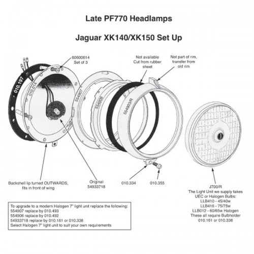 Rubber gasket to fit between the headlamp backshell and the wing or front panel when fitting late type PF770 backshell.